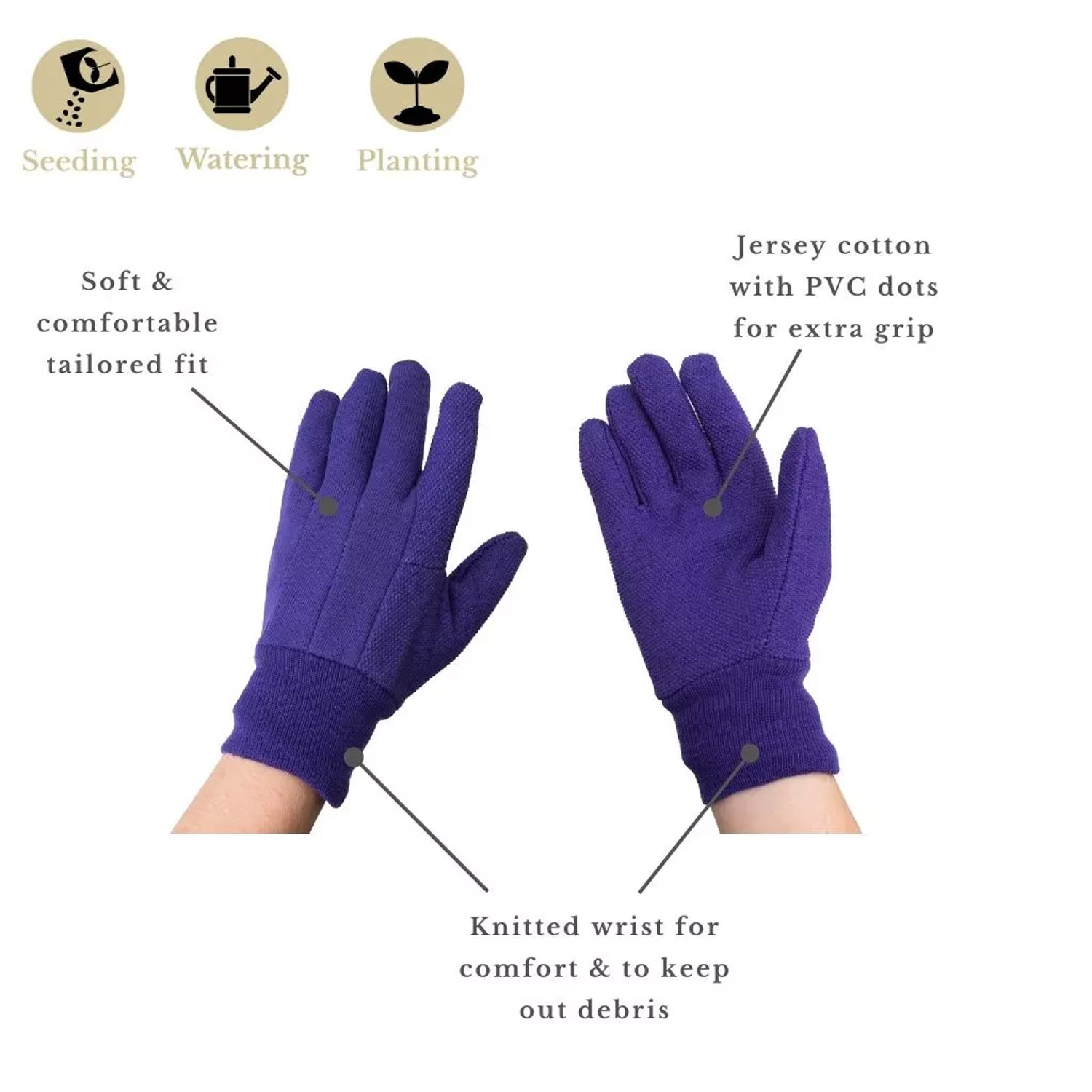 3 reviews for Kent and Stowe Jersey Cotton Grip Gloves Medium Purple