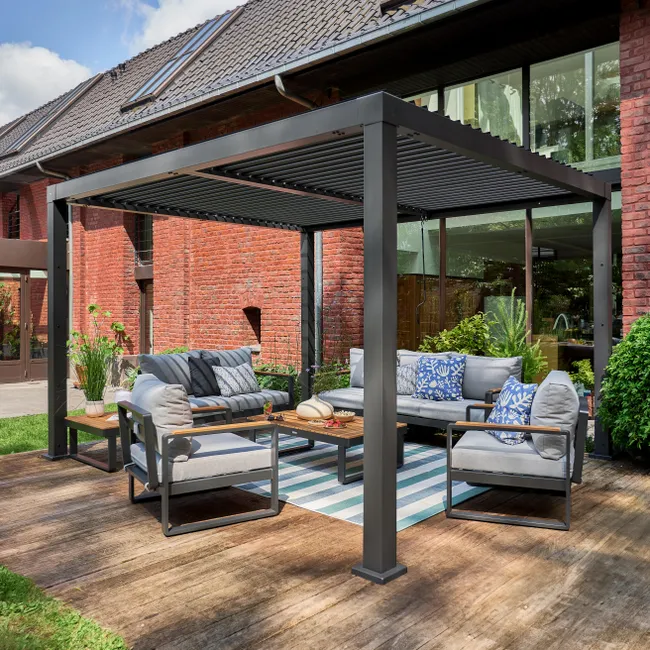 Con la pérgola bioclimática Origin de NATERIAL, su jardín o terraza se convierte en una auténtica extensión de su hogar, utilizable y confortable durante todo el año.